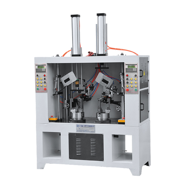 双工位外夹直口自动焊机)主要用于杯壶内胆、外壳直口压配后的焊接工艺。机架部份采用板金和5#方管整体焊接。焊枪位置角度调节方便。护目镜自动保护人脸。焊枪结构跟杯口灵活性好,操作简单易学,效率高,稳定性好,将产品放入设备模具中,按下启动,上缸顶头模具配口、气动卡盘夹紧产品主轴旋转、手轮微调焊枪位置,点火焊接一周,即可完成。加工产品稳定。是金属器皿制造加工企业的理想设备。